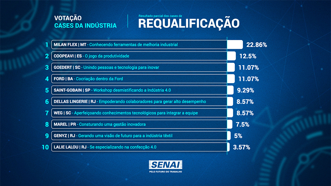 Para realizar uma votação entre cases apresentados pelas empresas no congresso, também desenvolvemos um aplicativo para os participantes do evento votarem em seus cases favoritos em 4 categorias. Os resultados parciais foram transmitidos em tempo real para os telões do evento.