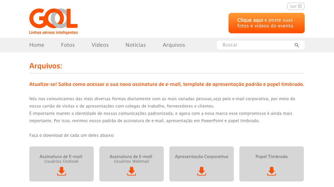 A Gol Linhas Aéreas Inteligentes lançou em julho de 2015 sua nova marca juntamente com todo o conceito que este novo posicionamento representa para a empresa. Em parceria com a Happy House Brasil, desenvolvemos um hotsite com acesso restrito para os colaboradores da Gol ficarem por dentro de todas as novidades que a empresa estava apresentando ao mercado.