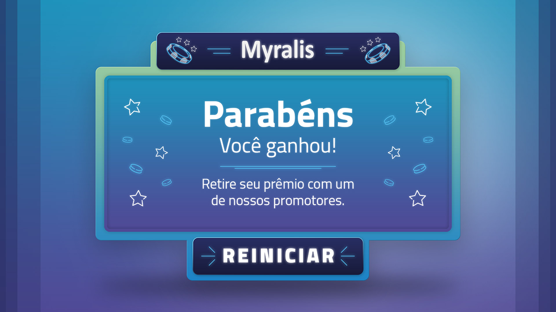 Com o intuito de criar uma experiência interativa divertida nos estandes da empresa em eventos do setor da saúde, desenvolvemos para a Myralis uma máquina caça-níquel virtual com as logomarcas de produtos da empresa. O jogo foi utilizado em um totem touch screen e os usuários que tinham como resultado três marcas iguais, ganhavam brindes dos promotores.