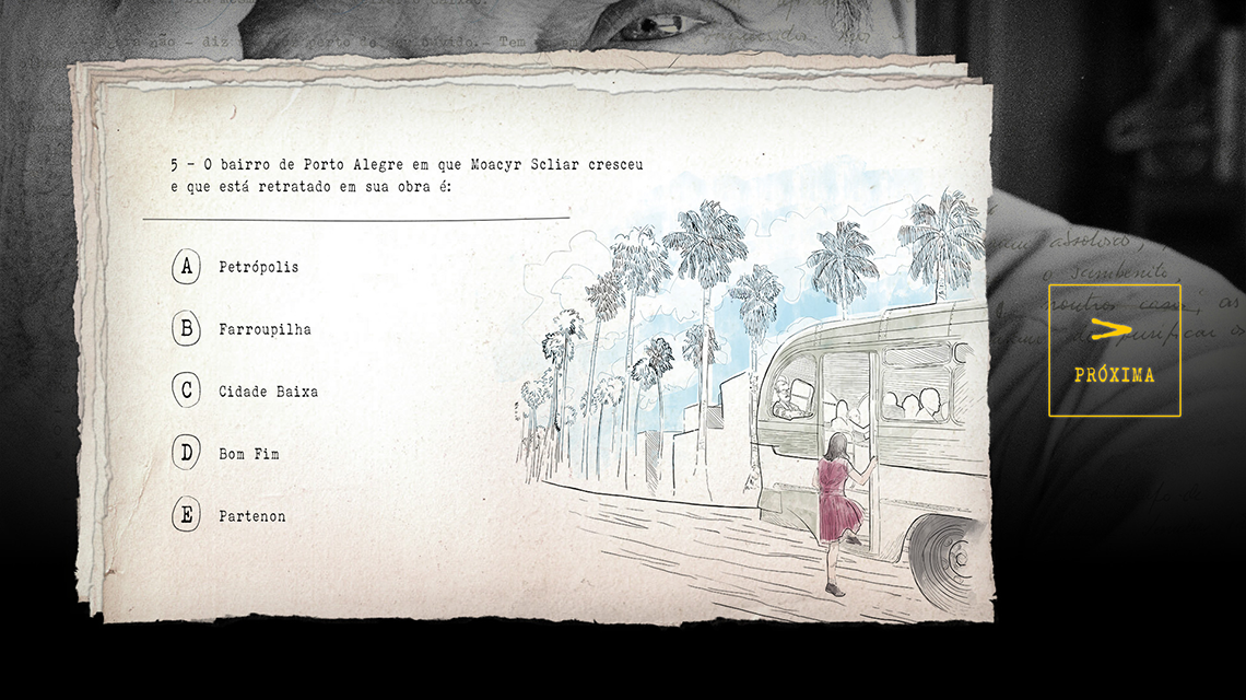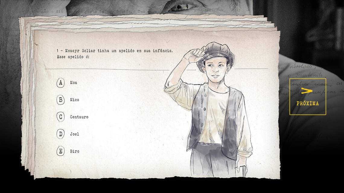 Com curadoria de Carlos Gerbase, a exposição Moacyr Sliar – O Centauro do Bom Fim foi a atração do Santander Cultural de Porto Alegre entre setembro e novembro de 2014. Desenvolvemos para a exposição um quiz sobre a vida e a obra do autor que pôde ser jogado pelo público em telas touch screen. O projeto contou com 20 perguntas divididas em dois níveis e diversas ilustrações da vida dele.